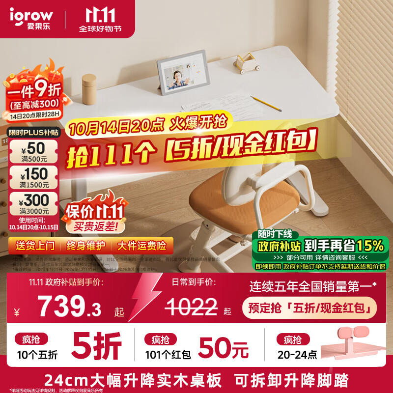 爱果乐学习桌儿童学习桌儿童书桌写字桌电脑桌实木大白桌中小学生1.2m 【实木桌】艺术家8+萌兔椅 橘
