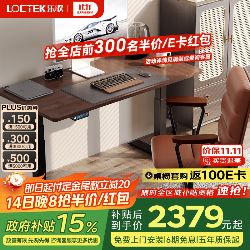乐歌电动升降桌电脑桌站立办公学习桌E5-N/1.4m 实木橡胶木黑胡桃木色