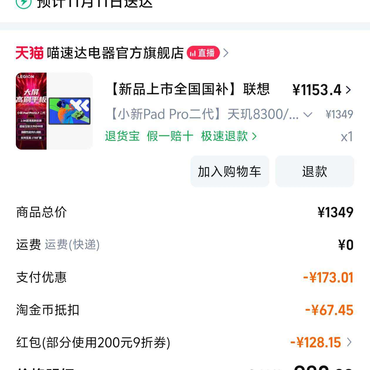[平台补贴+支持88vip消费券]联想小新Pad 11学生网课娱乐平板电脑