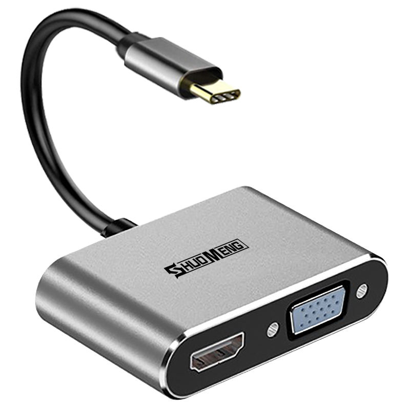 硕盟转接头type-c扩展坞type c转换器多接口hdmi拓展坞笔记本vga外typec扩展器适用mac苹果电脑macbook 【四合一】hdmi+vga+usb+pd 微软平板戴尔小新pro13投