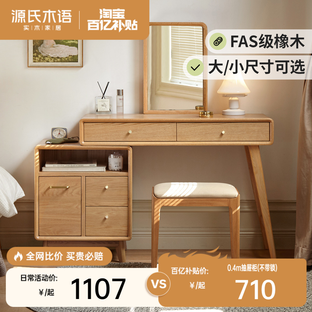 源氏木语实木梳妆台储物柜一体北欧简约橡木化妆台现代卧室化妆桌