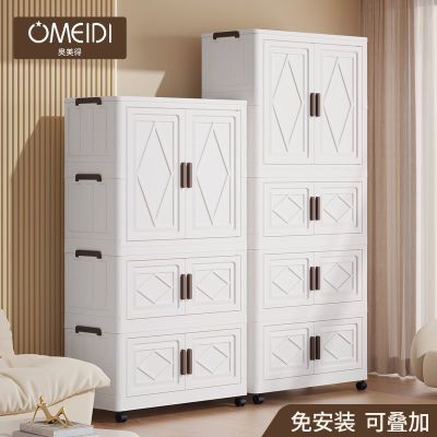 百亿补贴:折叠收纳柜免安装大容量儿童衣柜对开门杂物储物柜简约带轮置物柜