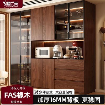 百亿补贴:健优美餐边柜实木家用客厅玻璃一体碗柜靠墙橱柜储物柜收纳展示柜