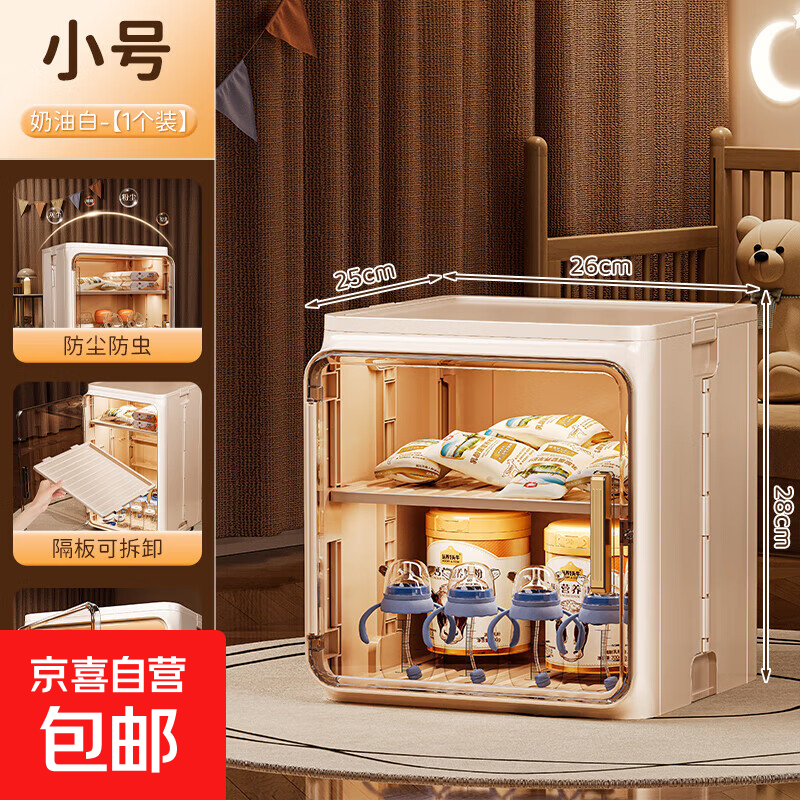 【安心推荐】奶瓶收纳柜母婴儿专用辅食工具收纳箱晾干沥水置物架 小号【奶油白】磁吸开门/健康材质