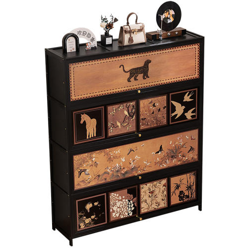 【中古风翻门】黑色-三层60长 鞋柜家用门口入户收纳柜一体靠墙