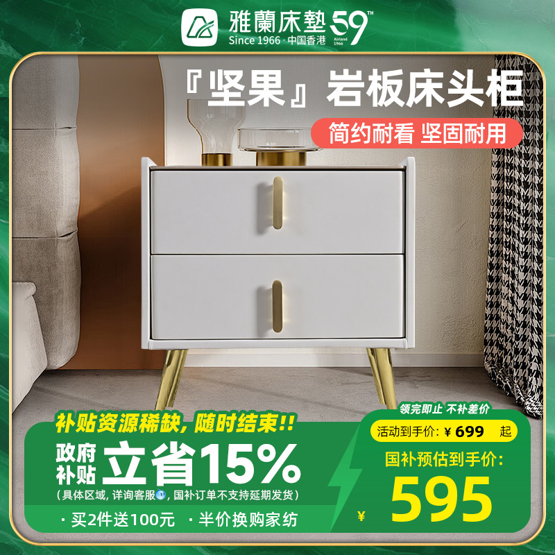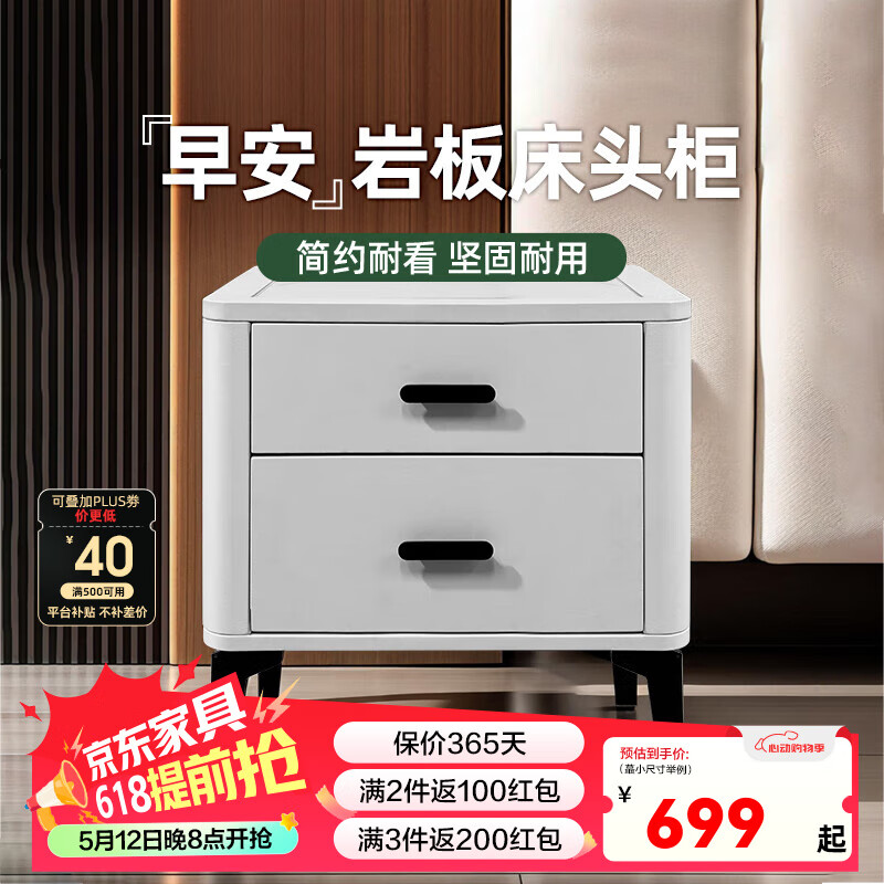 雅兰床头柜简约现代卧室床边柜轻奢岩板储物柜易清洁小型床头柜 早安 奶油白(自行安装柜脚和把手)
