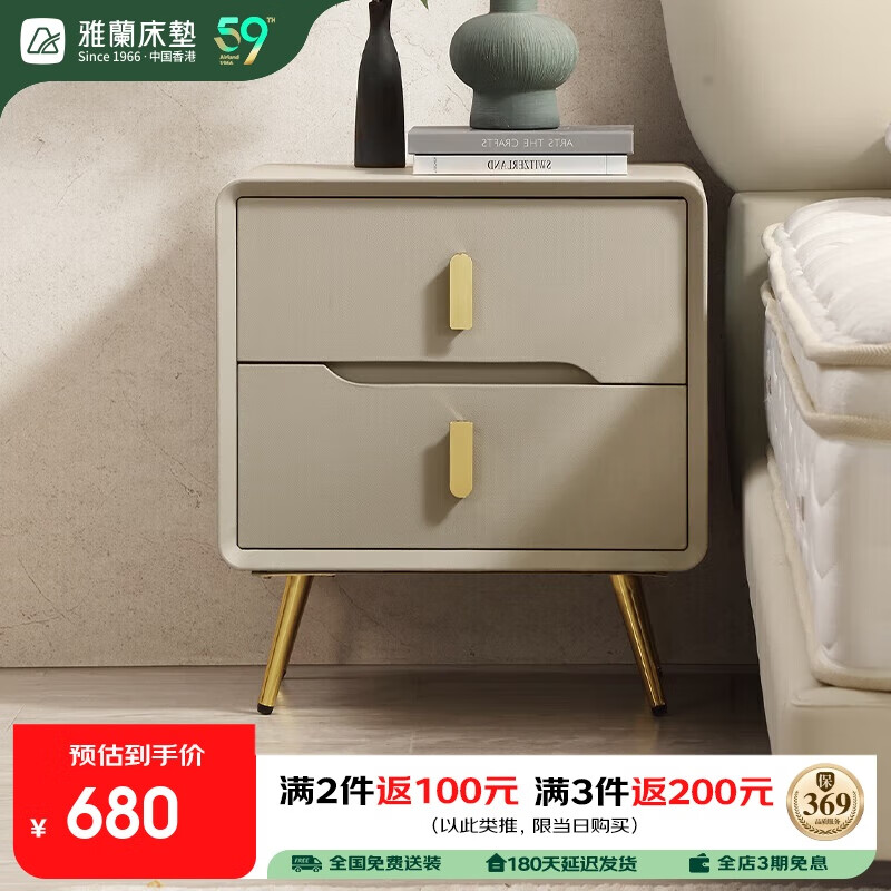 百亿补贴:雅兰床头柜轻奢收纳卧室小户型小型床边柜储物柜现代简约 留白