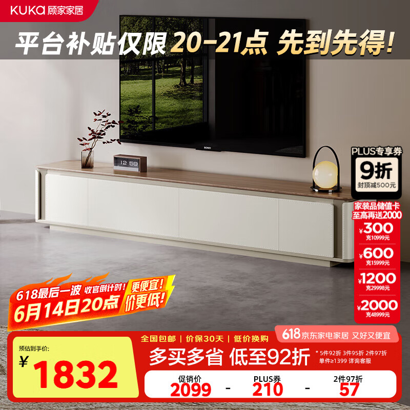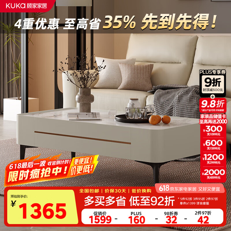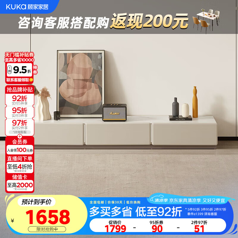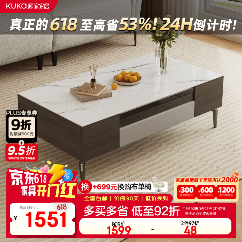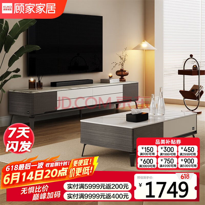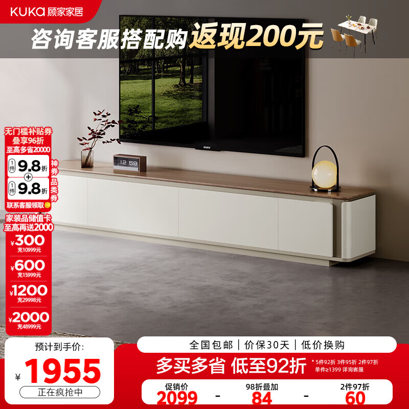 顾家家居(KUKA)顾家木艺茶几电视柜组合现代简约岩板茶几储物茶桌PT8061TD-V2.0米大理石电视柜【多空间收纳】