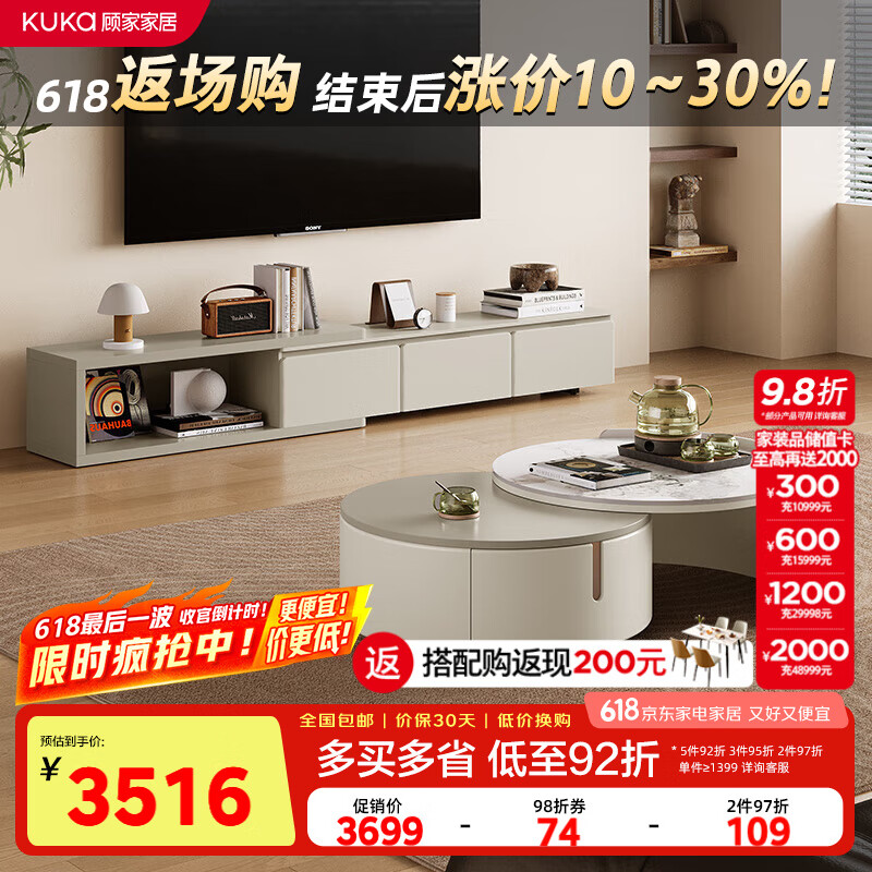 顾家家居(KUKA)实用可伸缩储物茶几客厅家用茶几PT7223 茶几-岩板款+电视柜-卡其