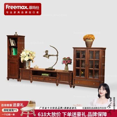百亿补贴:菲玛仕美式电视柜可透视储物柜客厅装饰柜实木置物架酒柜抽屉式