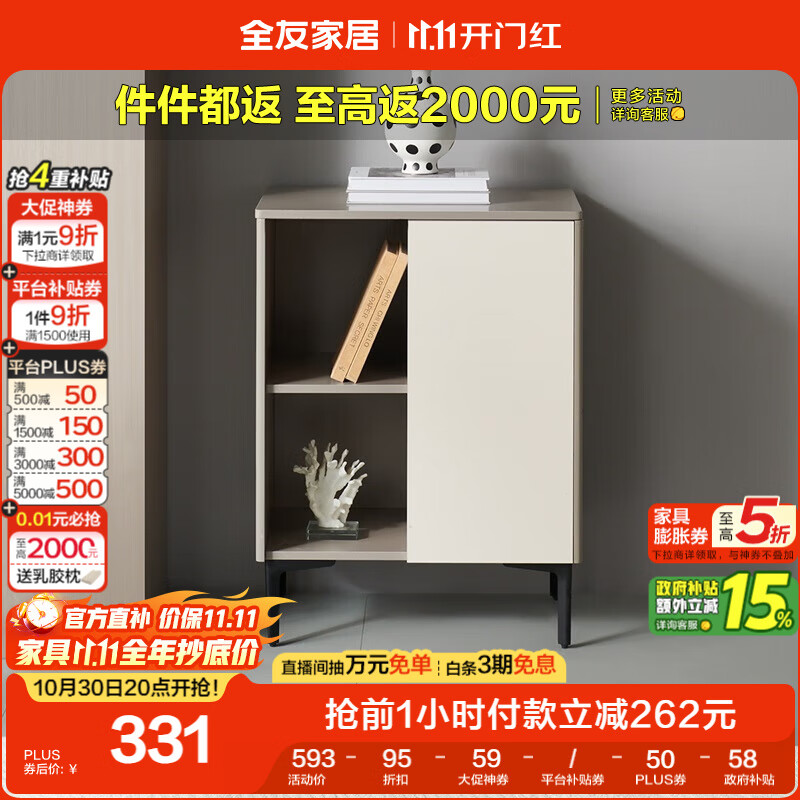 全友家居现代奶油风客厅家用电视柜边柜收纳储物餐边柜书柜沙发边柜子