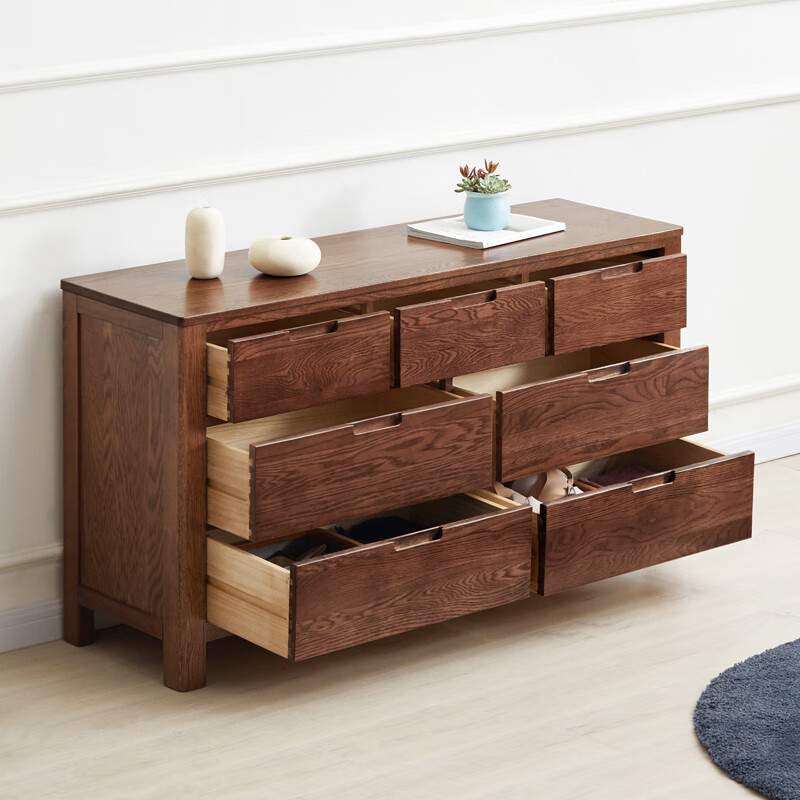 源氏木语全实木橡木五斗柜收纳七斗柜卧室客厅家具电视柜简约抽屉储物柜子 胡桃色七斗柜135*40*75.5cm 整装