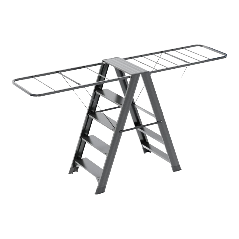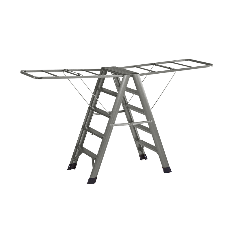 创硕 晾衣架落地梯子家用折叠多功能翼型人字梯 枪灰色五步梯子晾衣架