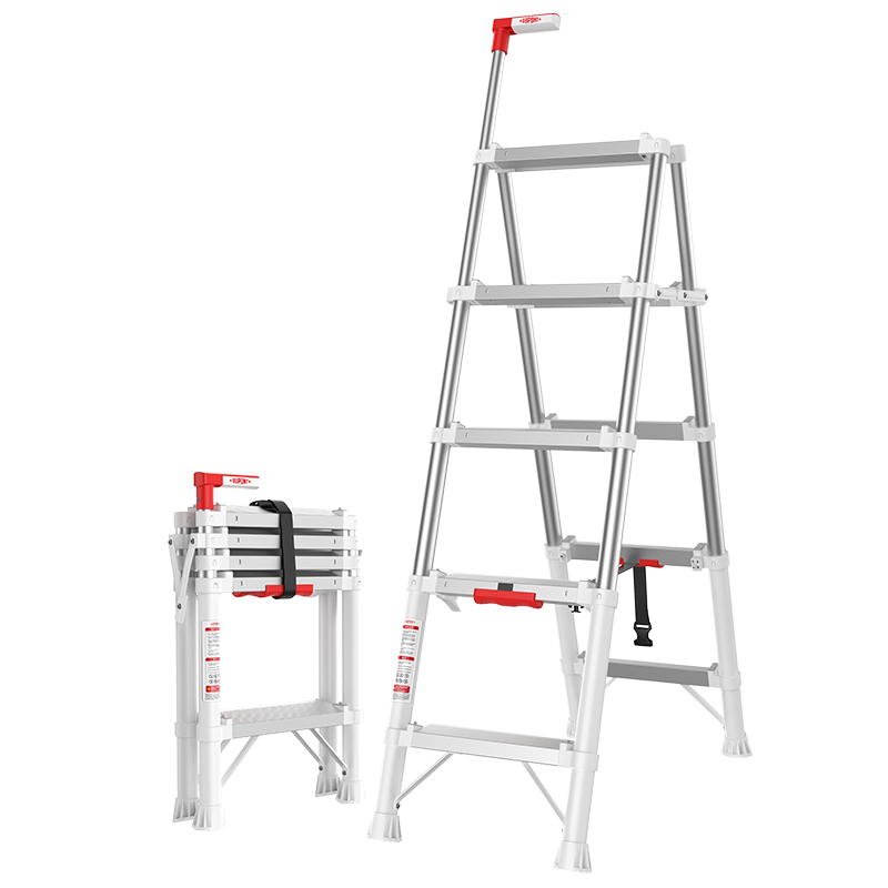 远耐乔迁梯子家用折叠梯工程梯多功能人字梯伸缩加厚室内楼梯-红三步