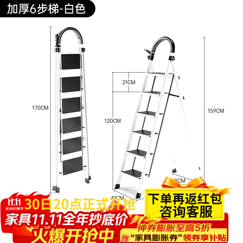 艾瑞科梯子家用折叠梯人字梯楼梯踏步板加厚安全便携多功能登爬楼梯 碳钢纯净白六步梯