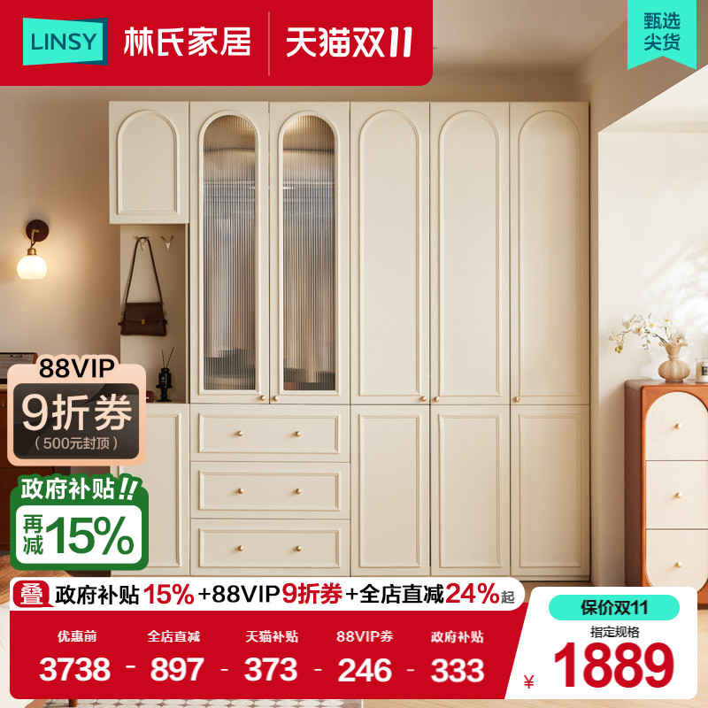 林氏家居法式复古大衣柜家用卧室奶油柜成品家具林氏木业繁花系列