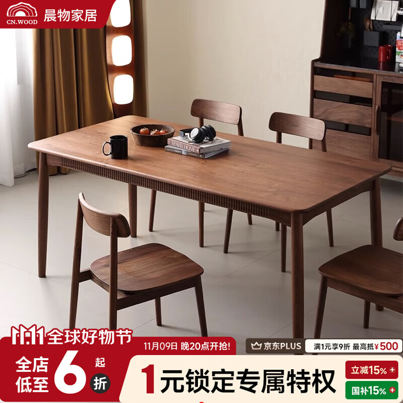 晨物北美黑胡桃木书桌餐桌全实木饭桌子家用日式家具长方形大桌组合桌 140*80*75cm
