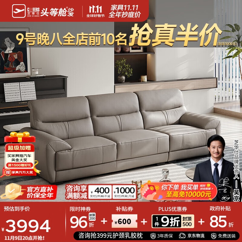 芝华仕(CHEERS)都市皮沙发现代简约真皮沙发大户型芝华士直排家用家具3120灰三