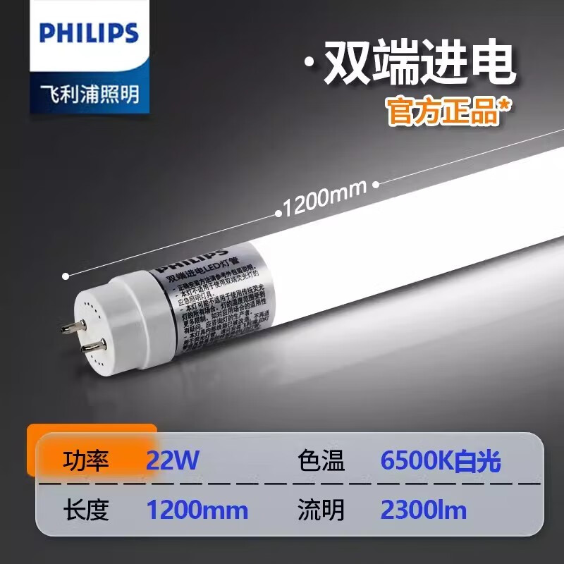 飞利浦(PHILIPS)T8灯管一体化LED灯管1.2米超亮日光灯管改造节能长条支架灯棒飞凡 灯管双端进电22W-白光1.2米 其它