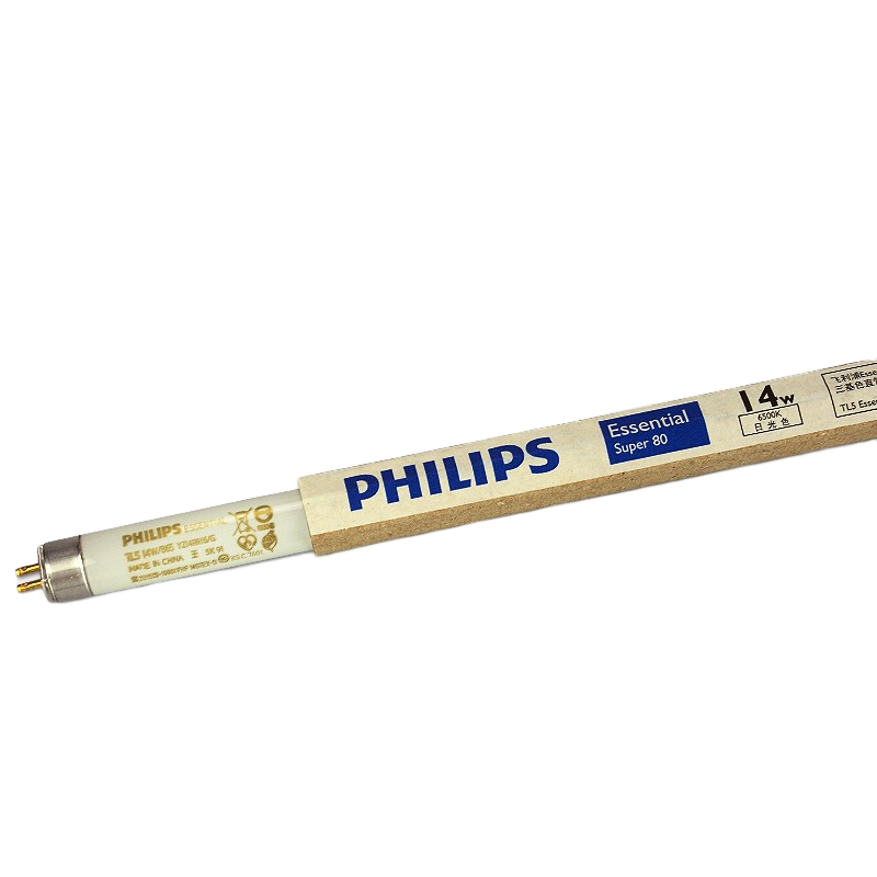 飞利浦灯管老式日光灯管三基色0.6米1.2米节能荧光灯管细管家用灯管长条 TL5/14W/长度56cm-5支装 白光-6500K
