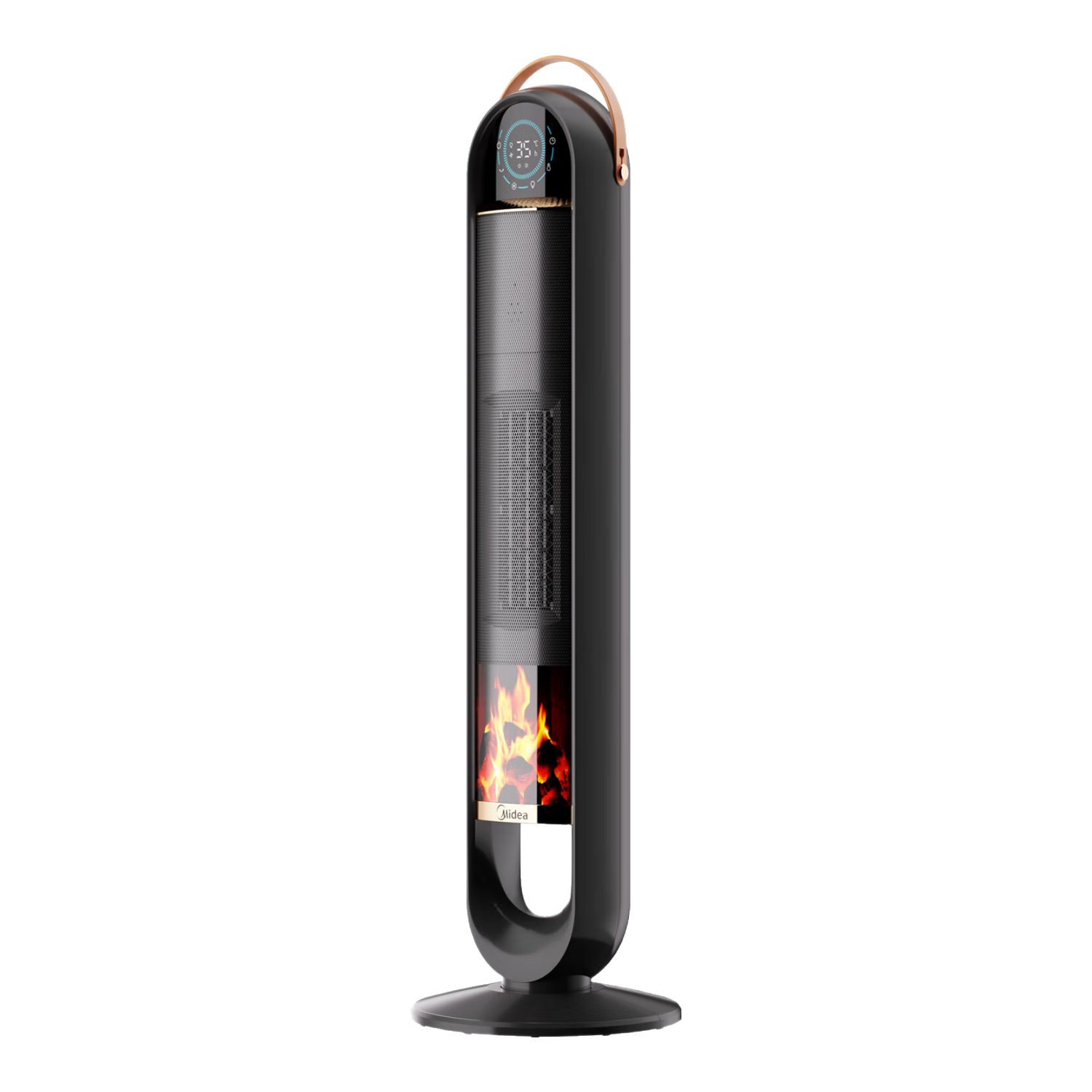 美的(Midea)取暖器石墨烯家用暖风机立式取暖器电暖风浴室热风机电暖气节能速热电暖器卧室烤火炉 高塔黑色语音火焰款【火焰氛围灯+智能语音】
