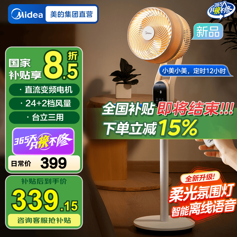 美的(Midea)【空调伴侣】空气循环扇直流变频电风扇家用风扇立式落地扇遥控定时换气扇轻音节能电扇 柔光氛围灯