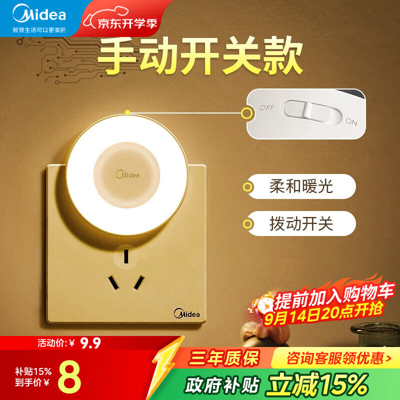 美的(Midea) 小夜灯卧室氛围床头灯儿童书房寝室宿舍过道走廊起夜灯节能LED 机械款