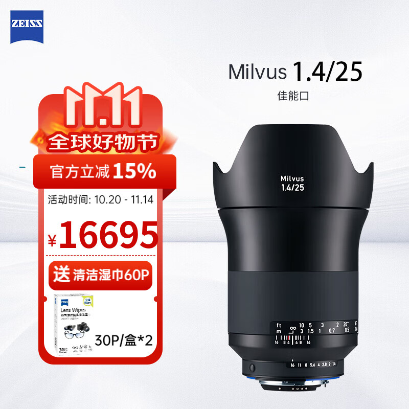 蔡司(ZEISS)Milvus猎鹰超广角定焦F1.4/25佳能全画幅单反镜头远摄大光圈尼康口手动对焦 Milvus 1.4/25 ZF.2 尼康口