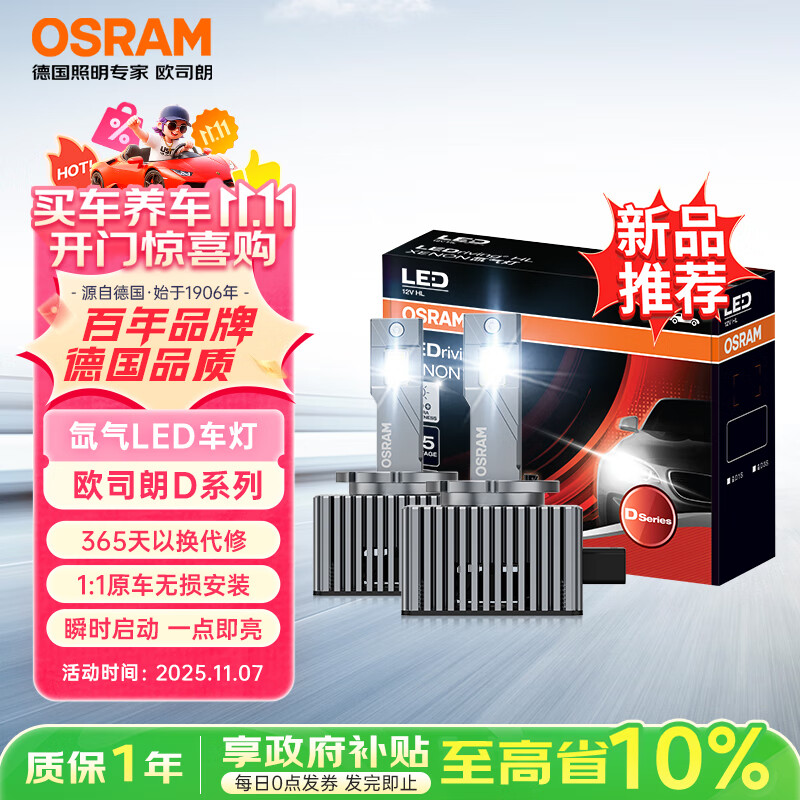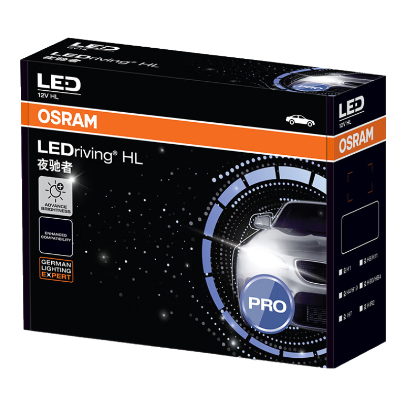 欧司朗(OSRAM)汽车LED大灯 汽车灯泡远光灯近光灯夜驰者PRO HB3/HB4 12V 40W