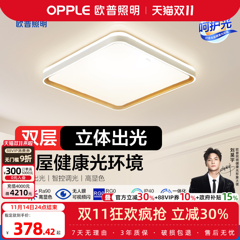 聚划算:欧普照明品见LED客厅吸顶灯现代卧室餐厅房间灯具方卧合集WS