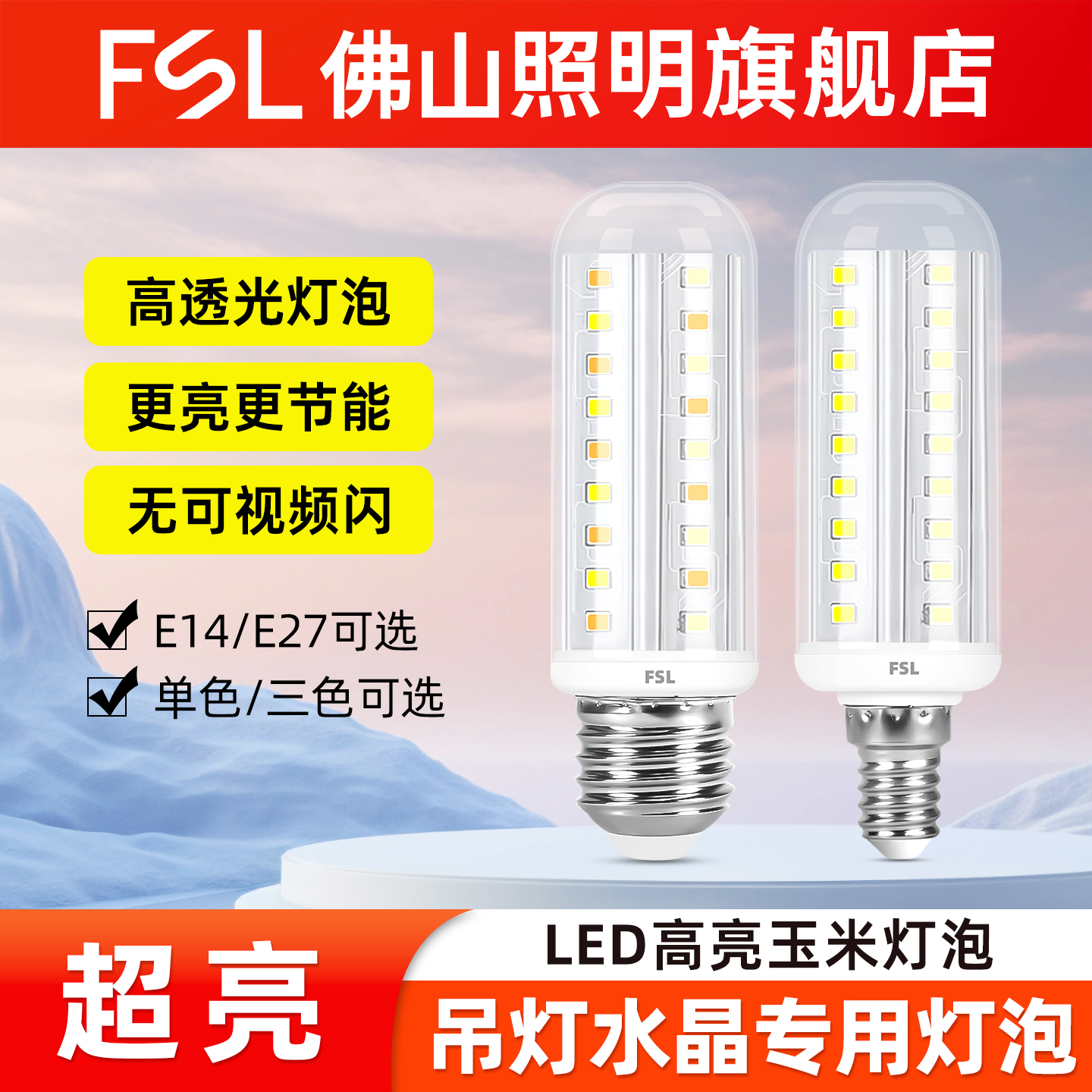 佛山照明超亮led灯泡节能e27e14小螺口家用三色变光蜡烛泡玉米灯