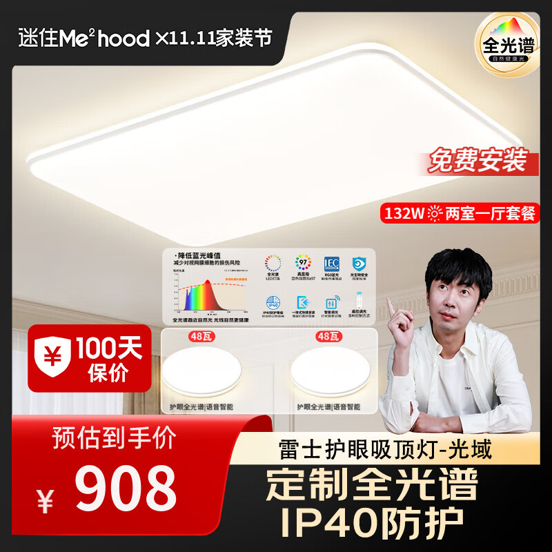 雷士(NVC)全光谱护眼吸顶灯客厅灯简约卧室智能LED照明灯具光域【迷瞪】 132W 定制护眼全光谱两室一厅