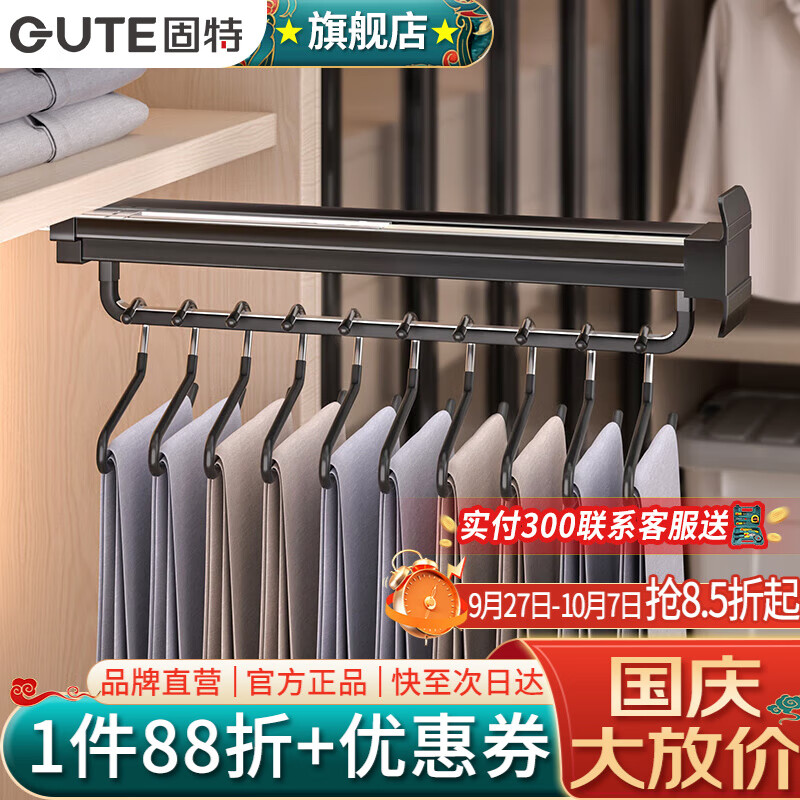 固特(GUTE)裤架抽拉伸缩架柜内滑轨收纳晾衣架裤抽裤挂衣柜挂衣杆多功能衣架 539阻尼黑色(柜深≥350) 顶装裤架