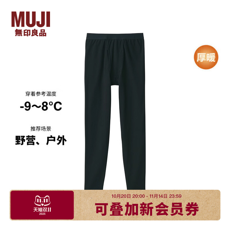 无印良品 MUJI 男式 棉 厚款 长紧身裤 打底裤纯棉全棉线裤家居裤