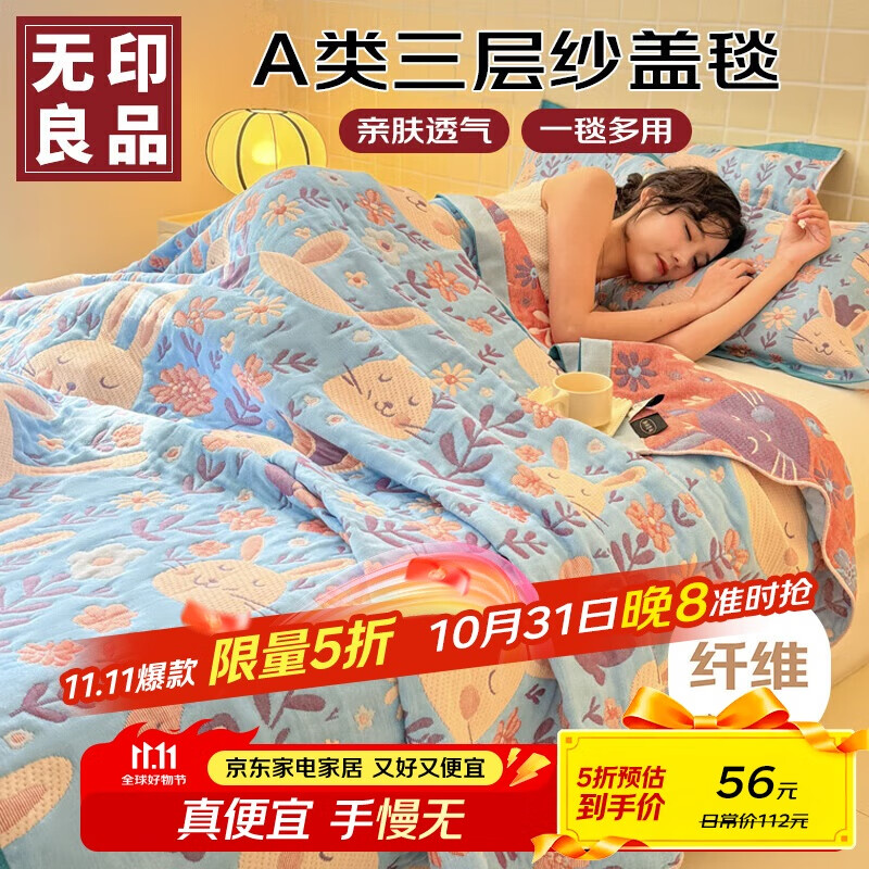 无印良品A类三层纱毛毯空调毯子夏季毛巾被四季通用午睡毯被子150*200cm