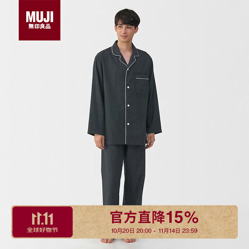 无印良品(MUJI)无侧缝 法兰绒睡衣 男士家居服 软棉棉内衣 深灰色图案5A XL
