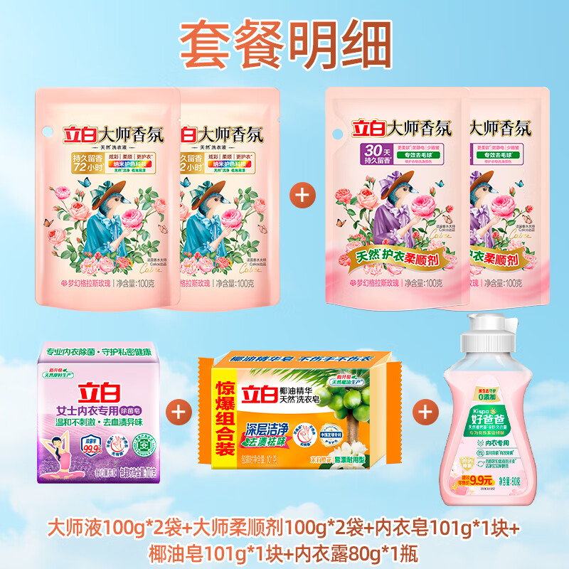 立白大师香氛洗衣液玫瑰柔顺护衣持久留香洁净护色洗衣香水低泡易漂洗 【7件套】衣物清洁套装B