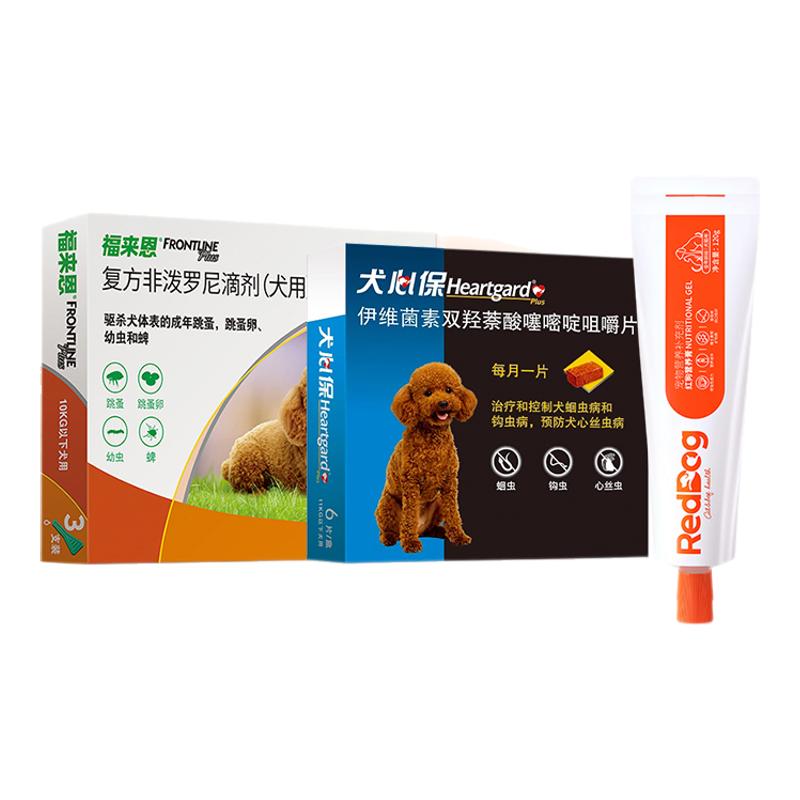 1g 【狗营养驱虫全加桶】福来恩犬心保狗狗驱虫药内外同驱红狗营养膏