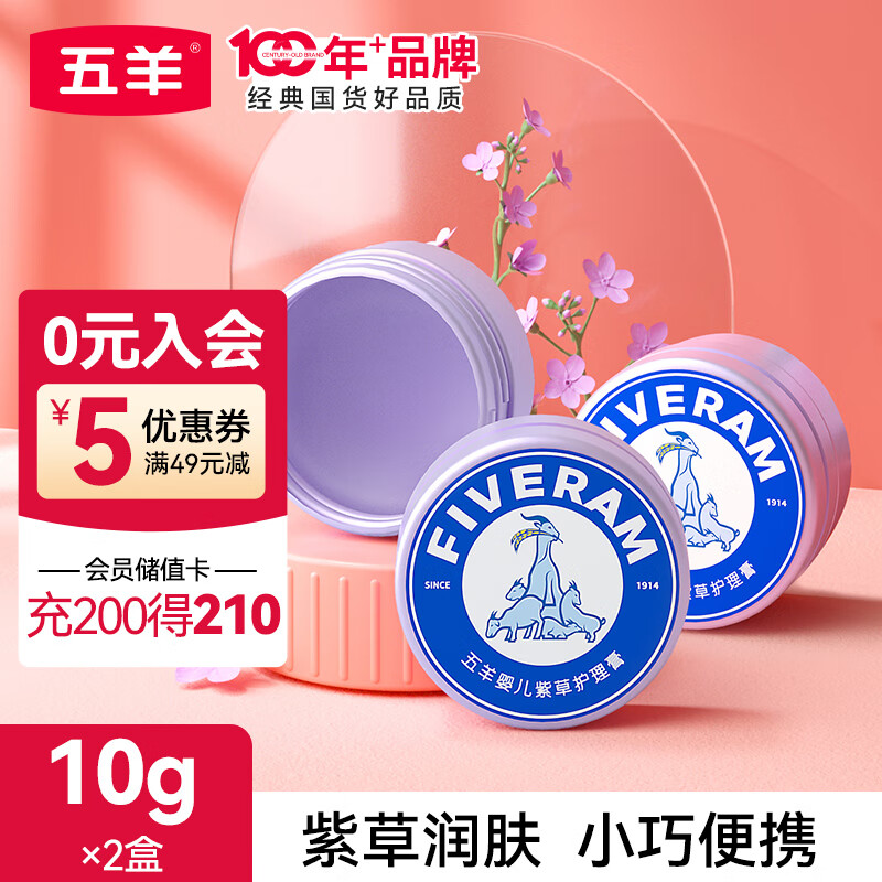 五羊(FIVERAMS)婴儿紫草膏护理膏清凉舒爽肌肤宝宝护理霜蚊虫叮咬处可用 10gx2盒