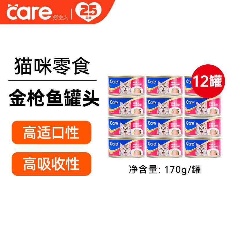 好主人猫罐头 猫咪零食金枪鱼猫罐头 猫湿粮成猫幼猫通用宠物零食 【零食罐】金枪鱼猫罐头170g*12
