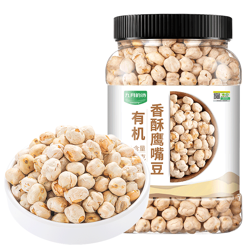 九月的诗有机熟鹰嘴豆600g罐装即食炒货原味零食五谷杂粮豆京东自营旗舰店
