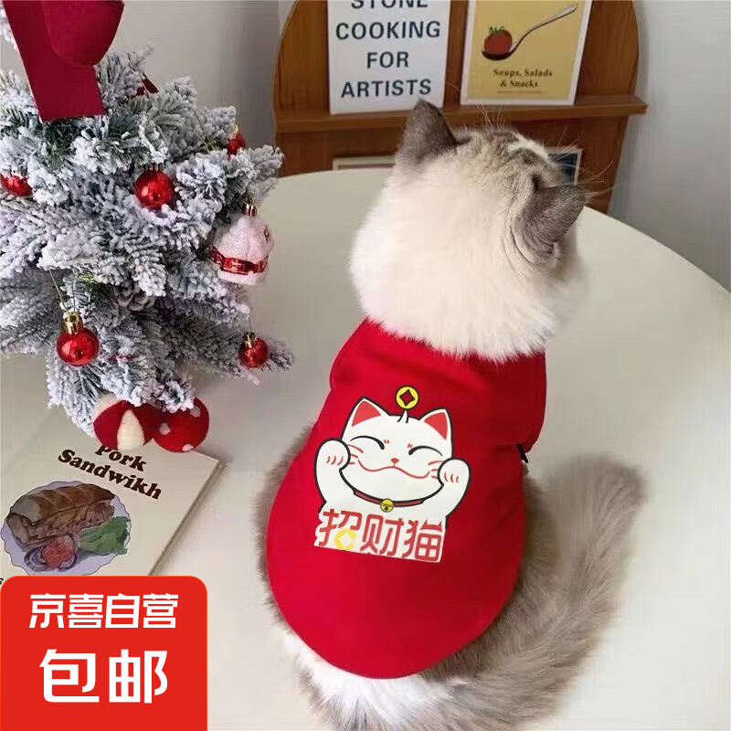 【招财爆款】宠物衣服红色喜庆猫咪狗狗衣服招财猫防掉毛舒适透气 中国红醒狮-平安喜乐 XL【9-11斤】
