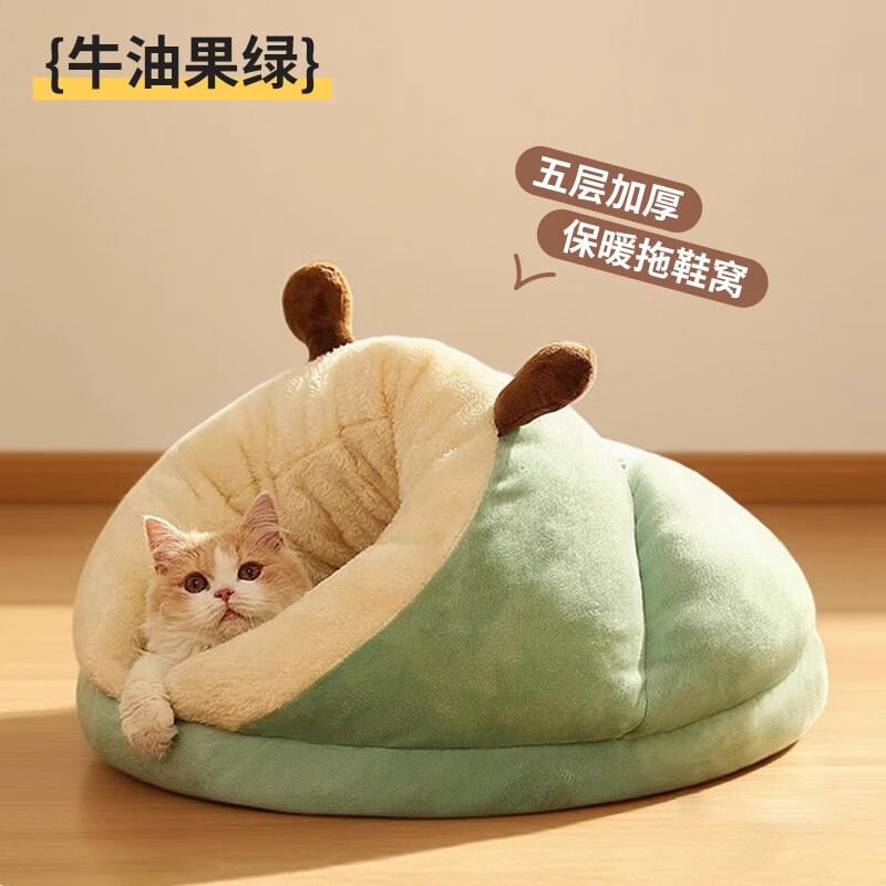艾风格加厚猫狗窝冬季保暖半封闭式拖鞋型宠物窝 【牛油果绿】加绒加厚温暖包裹拖鞋窝 S-38*28*20cm【适合5斤内 】