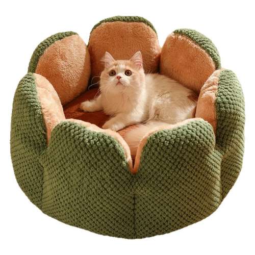 花瓣猫窝【深陷包裹】牛油果绿 S码 0-6斤内可用【直径40cm】 猫窝四季通用半封闭式猫屋冬季保暖猫房子冬天猫咪用品狗窝宠物床