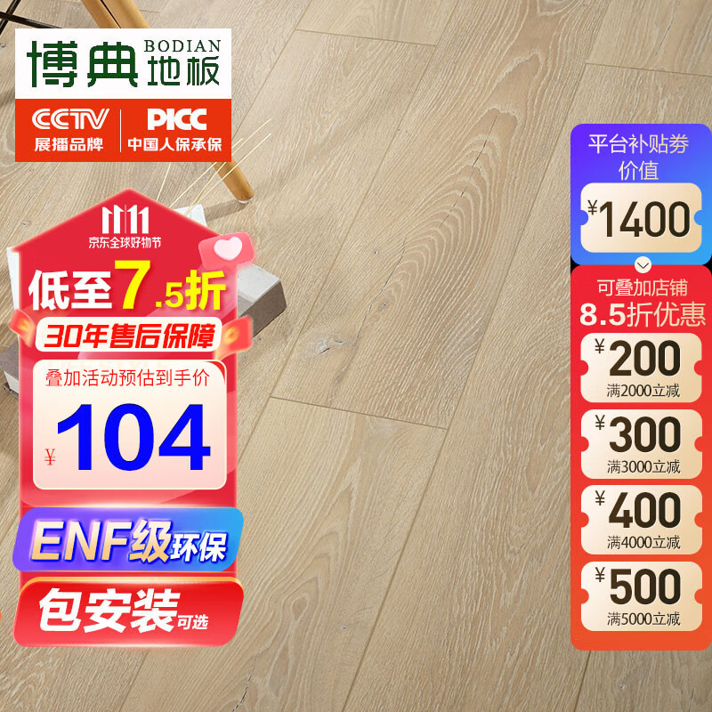 博典新三层实木复合地板家用 ENF级环保地热地暖防水耐磨木地板18MM厚 ENF9902 18mm厚