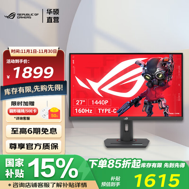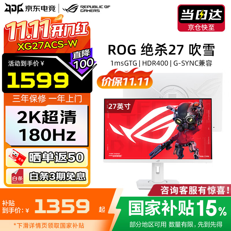 华硕ROG 绝神27/绝杀27/超神27/超杀27【国家补贴】27英寸电脑显示器2K/4K显示屏 240Hz高刷 【XG27ACS吹雪】2K 180HzHDR400
