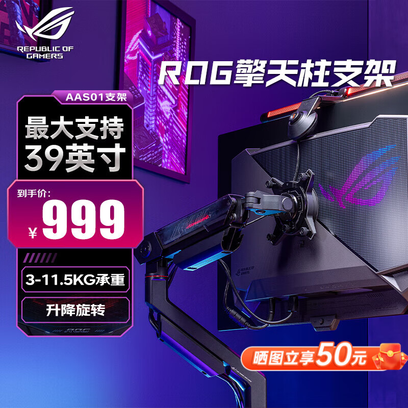 华硕(ASUS)ROG擎天柱支架AAS01 电竞显示器支架 显示屏机械臂桌面电脑悬臂vesa升降屏幕 ROG AAS01擎天柱支架