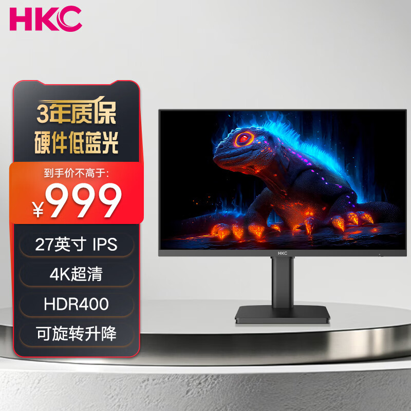 hkc/惠科 显示器 4K高清IPS 低蓝光 三面微边可壁挂 27英寸 S2716U