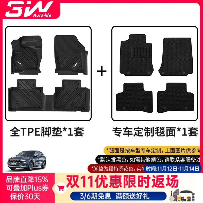 3W适用福特锐界plus电马E锐际领睿F150烈马探险者游骑侠TPE汽车脚垫 锐际脚垫+毯面