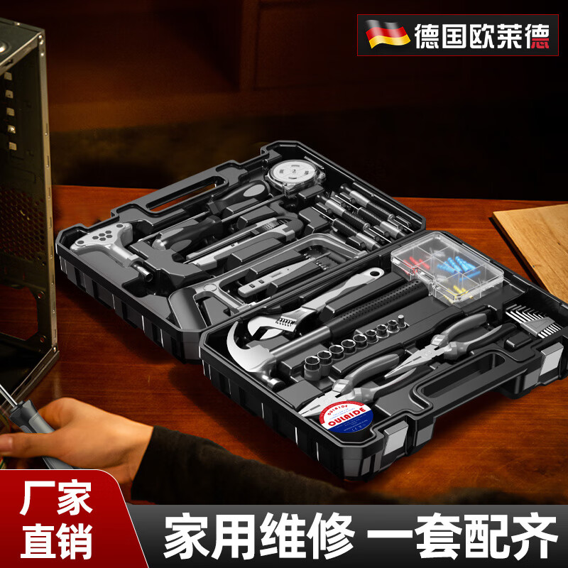 欧莱德(OULAIDE)家用工具箱多功能手动五金工具箱套装家庭电工木工维修组合套 冲量款超值家装豪华82件套